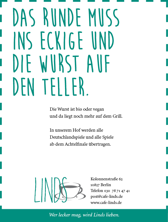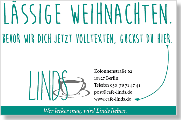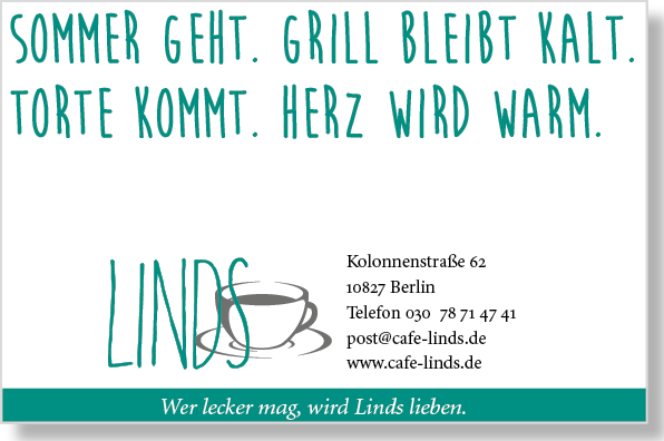 Wer lecker mag. Café Linds – ein tolles Konzept, beste Qualität und unglaublich nette Menschen. Hier kommt das »Best Of« der Anzeigen, Postkarten und der Schokomuffin Wandkleber ... das Linds schloss seine Türen aus dem besten Grund, den es dafür gibt: das zweite Baby.